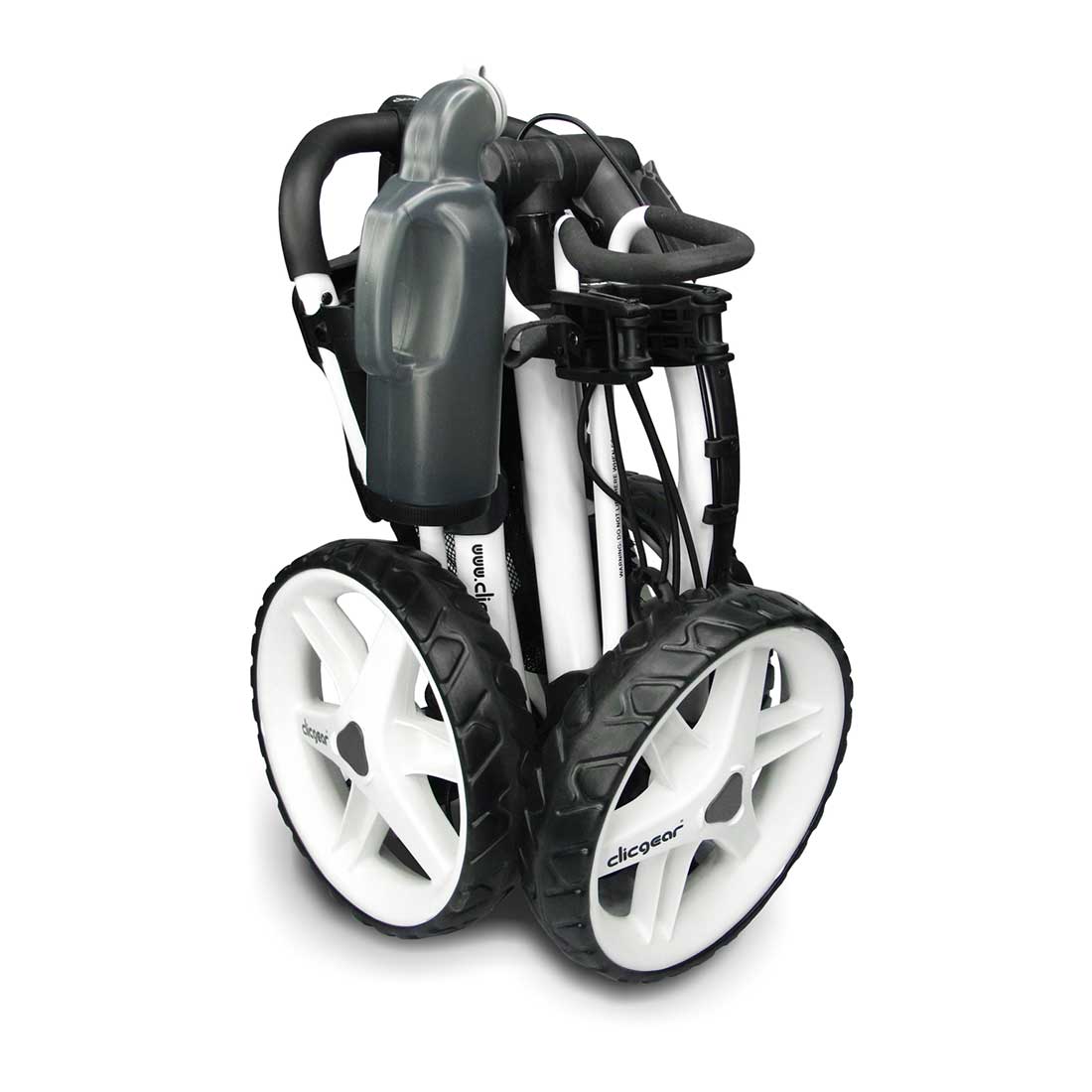 The Clicgear Sand Bottle conveniently holds sand for reseeding divots and maintaining course conditions. This unit comes with two separate mounting clips. The first mounting clip secures to the handle of any push cart for keeping the Sand Bottle close at hand while playing. The second mounting clip secures near the lower bag support to store the Sand Bottle with ease while the cart is not in use.